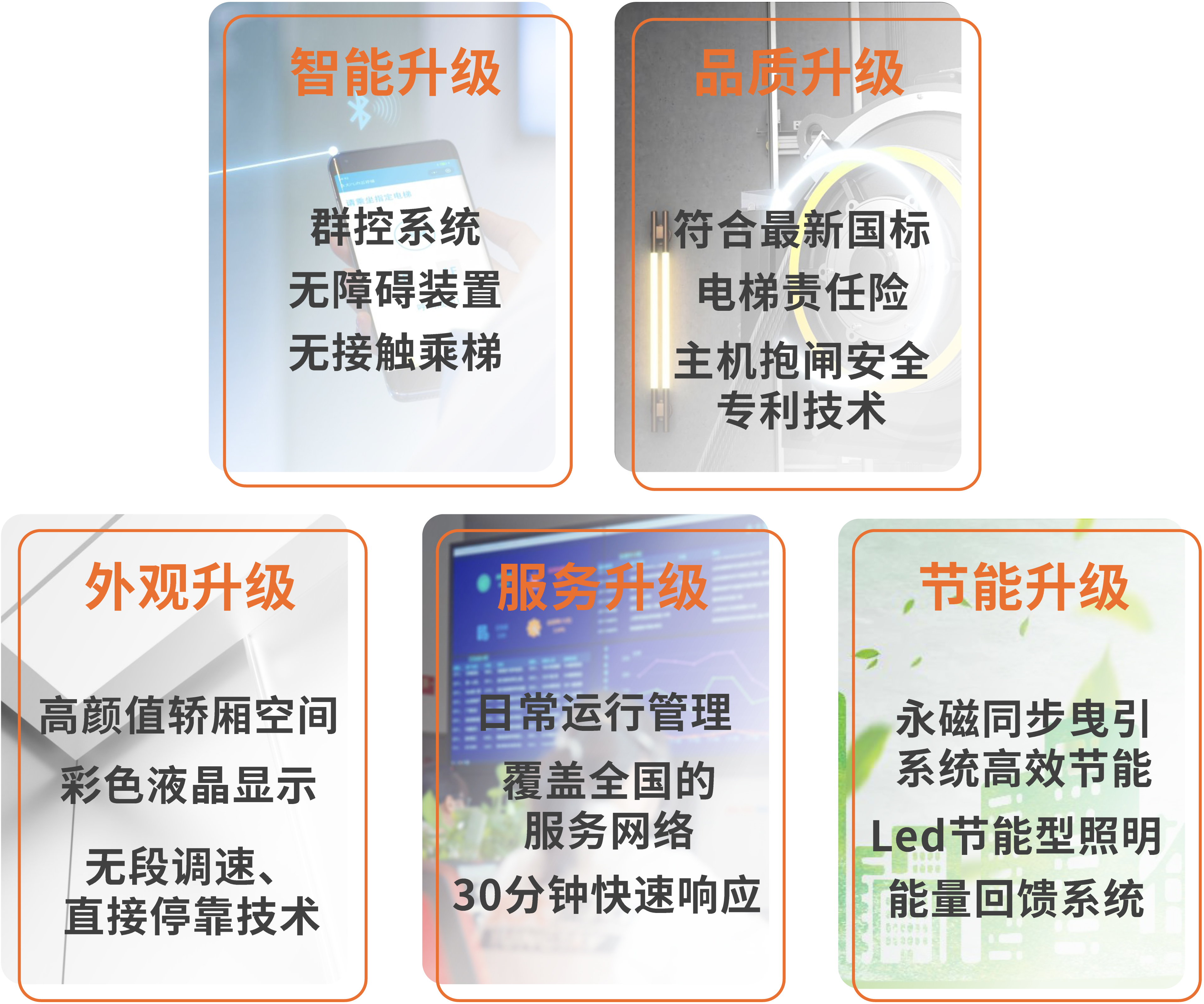 獨(dú)有安全專利、遠(yuǎn)程監(jiān)測(cè)物聯(lián)網(wǎng)、365天*24h的客服中心隨時(shí)待命,為社區(qū)的日常乘梯安全默默守護(hù)
