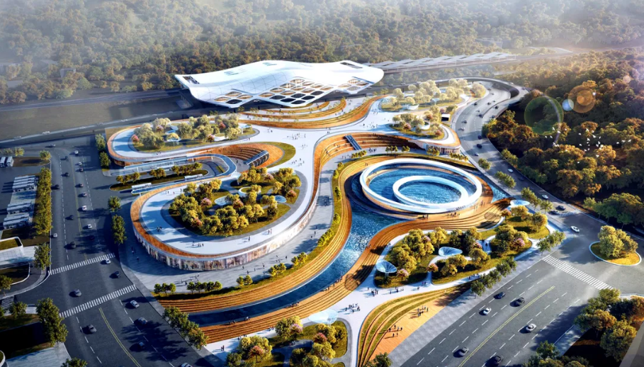 以“海韻浪涌,曙光初升”為設(shè)計(jì)靈感。寓意溫嶺作為濱海山城、中國(guó)大陸新世紀(jì)第一縷曙光首照地的獨(dú)特魅力